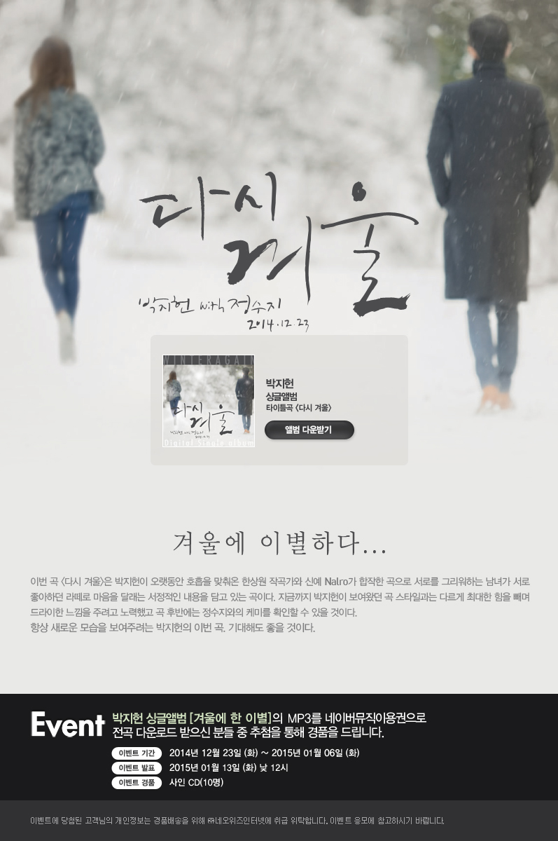 네이버 뮤직 :: 박지헌 [겨울에 한 이별] 발매 이벤트!!