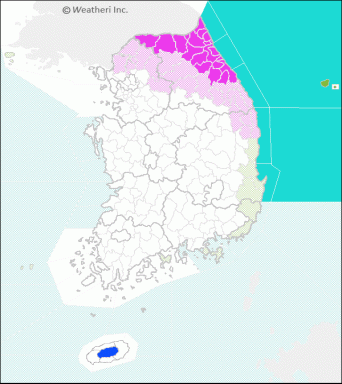 ▫︎ 강풍주의보 : 울산, 부산, 경상남도(거제, 통영), 경상북도(울진평지, 경주, 포항, 영덕), 흑산도.홍도, 전라남도(거문도.초도, 여수), 서해5도